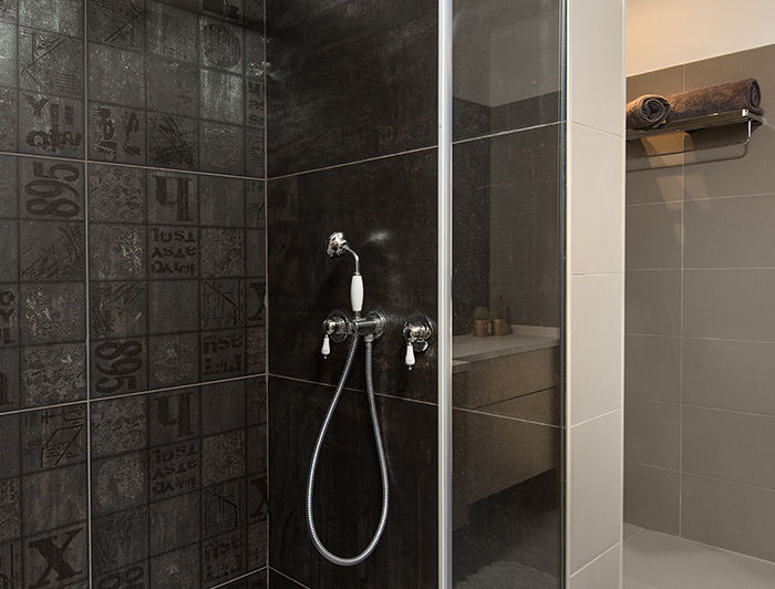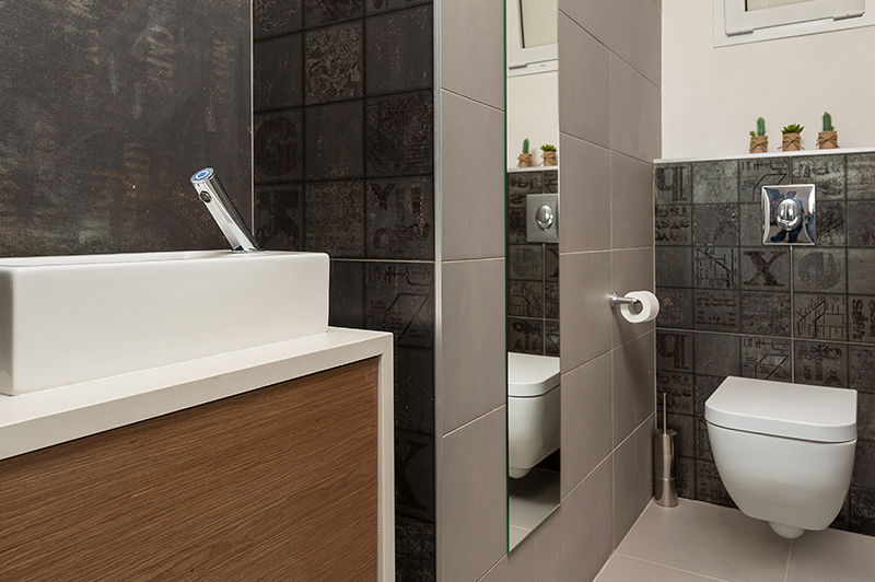 חדר רחצה הורים: הרצון להרגיש כמו במלונות באירופה עם כיור גדול שסביבו תוכנן ארון אמבטיה תלוי באורך 2.40 מטר ,כלים סניטריים בסגנון אירופאי.